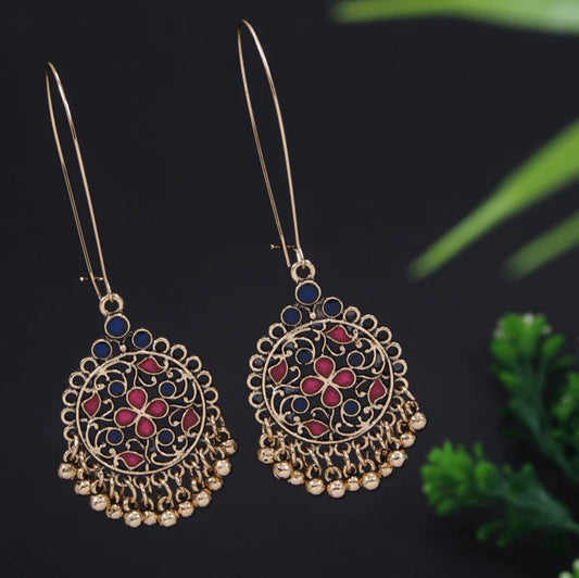 Gold plated round shaped enamel with pearl studded fashion antique jhumki earing